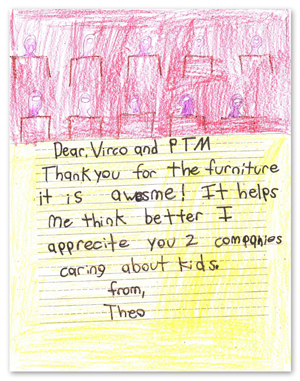 The children also had very many positive things to say about the furniture. It was noteworthy that many of them expressed how proud they were to be chosen to have the new furniture and that having the special chairs made them want to take better care of their classrooms.