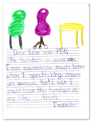 The furniture helped my students to focus by providing them with the opportunity to move, swivel and rock.